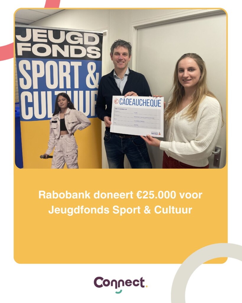 Onlangs ontving Stichting Connect een bijdrage van €25.000 uit het coöperatief dividend van Rabobank Gelderse Vallei. Dankzij deze steun kunnen we via het Jeugdfonds Sport & Cultuur Gelderland nóg meer kinderen en jongeren in Barneveld laten meedoen aan sport en cultuur ook als dat financieel niet vanzelfsprekend is.