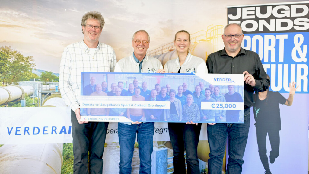 De Verder Group brengt hun beloften op het gebied van duurzaamheid- en maatschappelijke impact in de praktijk. Bij het schenken van hun jaarlijkse bijdrage aan een goed doel in één van de landen waar ze actief zijn was deze keer Nederland aan de beurt. Op 4 december 2025 overhandigden Uno Sissingh (algemeen directeur Verder Nederland) en Jan Arnold Mook (logistiek manager, logistiek centrum Groningen), namens alle medewerkers van Verder, de jaarlijkse donatie van €25.000 aan het Jeugdfonds Sport & Cultuur Groningen. Met deze genereuze donatie helpen ze kinderen hun potentieel te ontdekken.