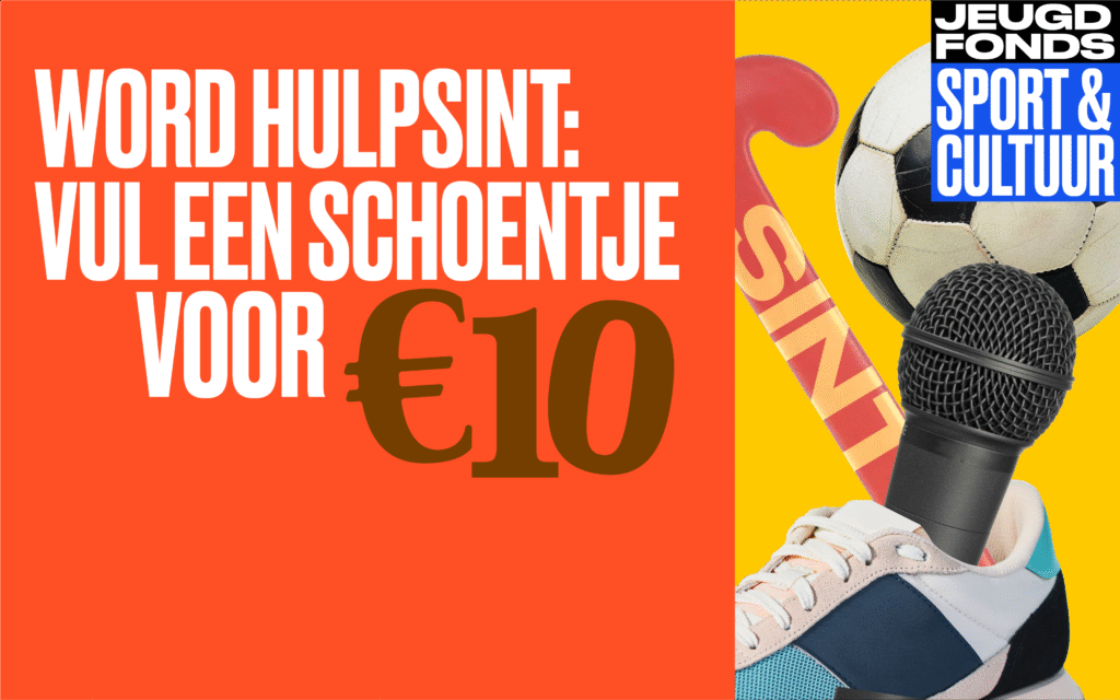 YES, het grote cadeautjesfestijn is weer begonnen! Althans, voor de meeste kinderen. Jammer genoeg blijven óók heel veel schoentjes leeg: gezinnen hebben niet altijd de financiële middelen om ze te vullen. Laat staan om hun kinderen in te schrijven voor muziekles of voetbal!   Het Jeugdfonds is er het hele jaar door voor deze kinderen. Wij zorgen dat ze wél mee kunnen sporten, dansen en zingen. En daar kunnen we wel wat extra hulp bij gebruiken: we lanceren onze Hulpsint-campagne en roepen alle Hulpsinterklazen in Nederland op om een schoentje te vullen met sport en cultuur. Niet alleen voor 5 december, maar voor het hele jaar.